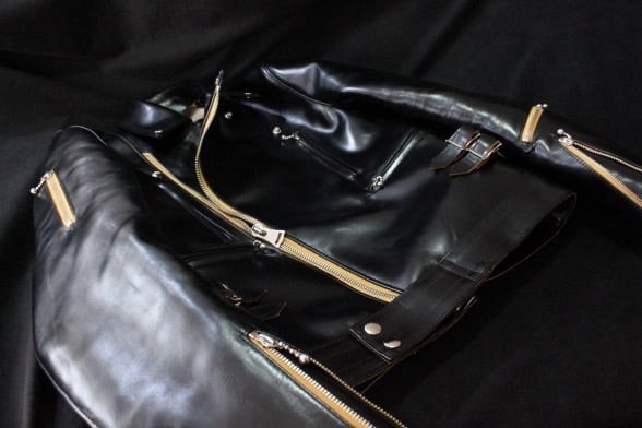 ベジタブルタンニン鞣しされた国産馬革を使用し一着一着ハンドメイドで作製いたしました。植物の渋で鞣し、ベースを茶で染め上げてからブラックにしているため擦れた箇所から現れる【茶芯】や【シワ】などが形状記憶のように入り、エイジングが楽しめる、育てがいのあるライダースとなります。ZIPにはコレクションブランドにも採用されているwaldesのZIPを使用。